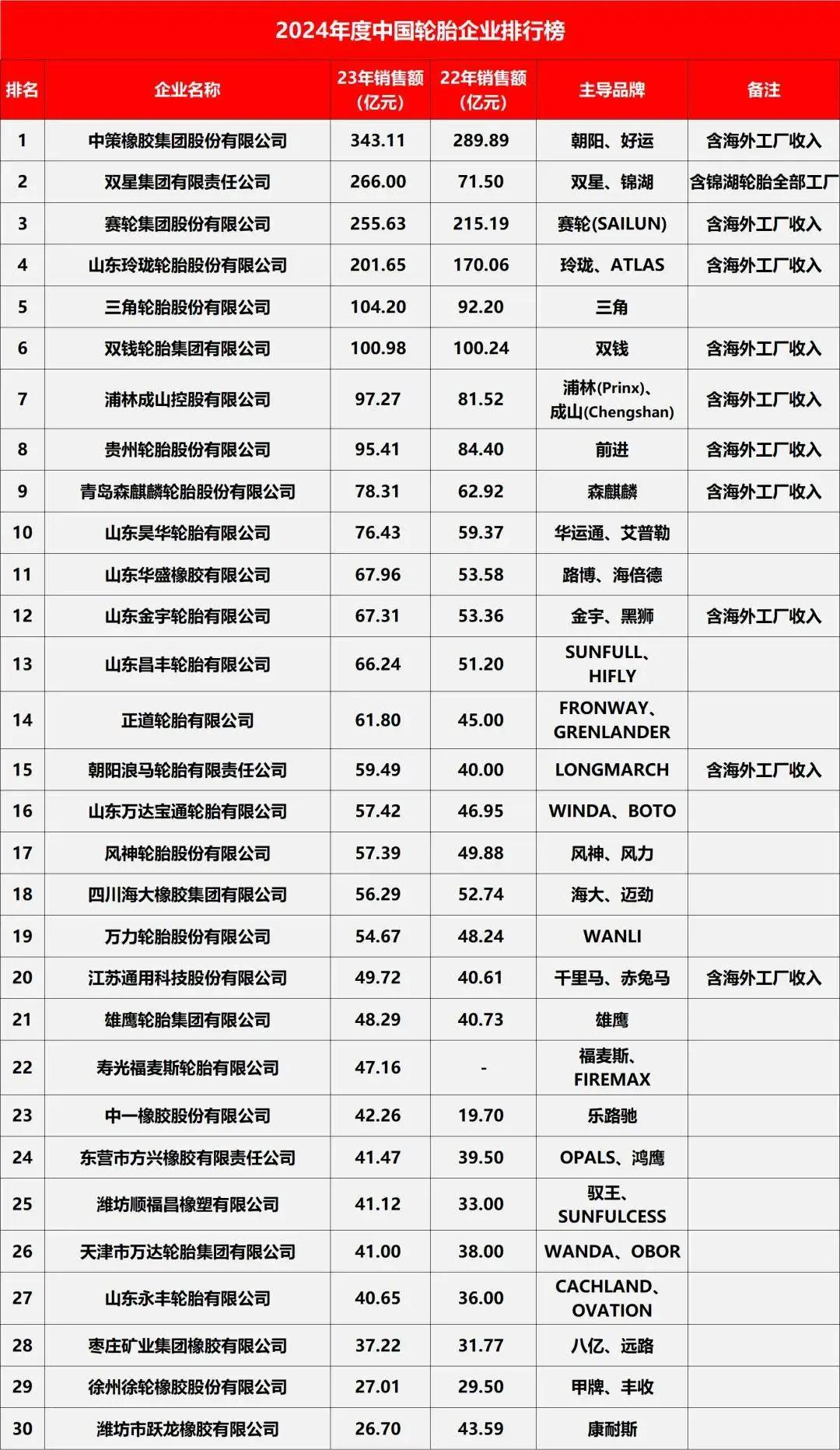 合并之后轮胎企业数据概况